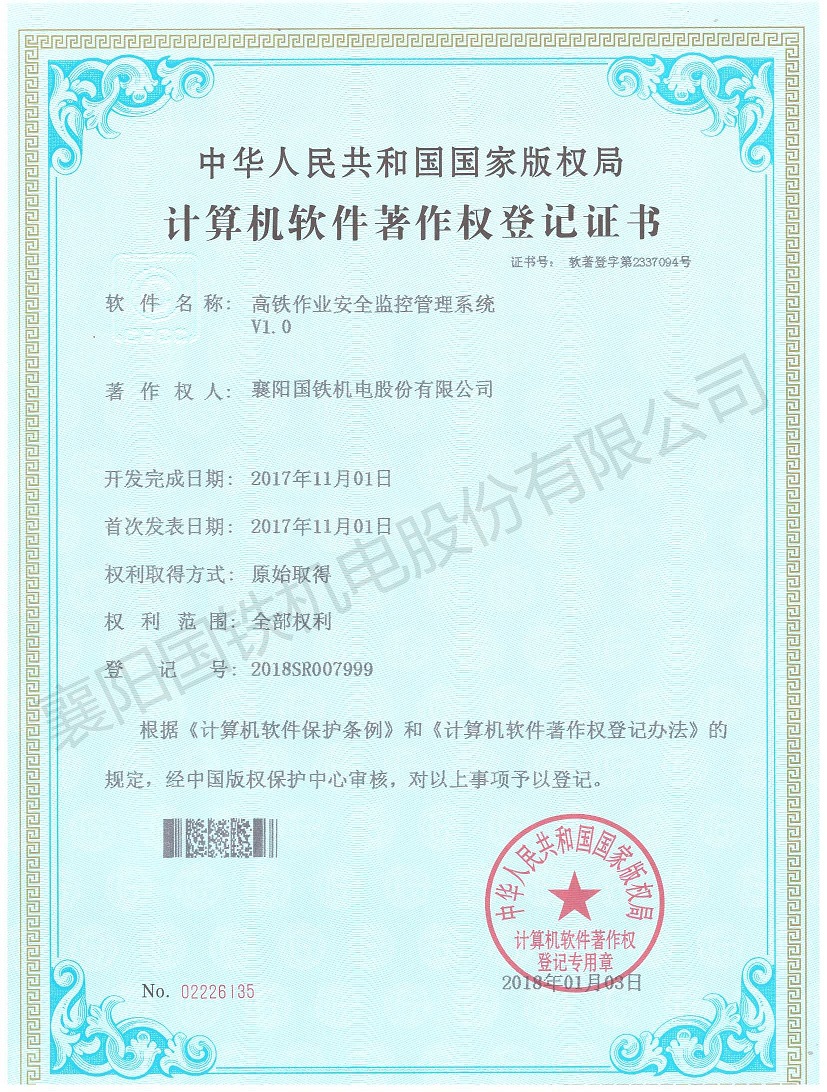 高鐵作業(yè)安全監(jiān)控管理系統(tǒng)(軟件著作權證書)