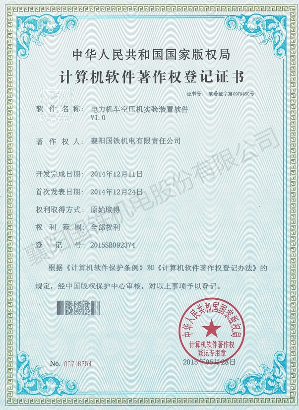電力機車空壓機實驗裝置軟件(軟件著作權證書)