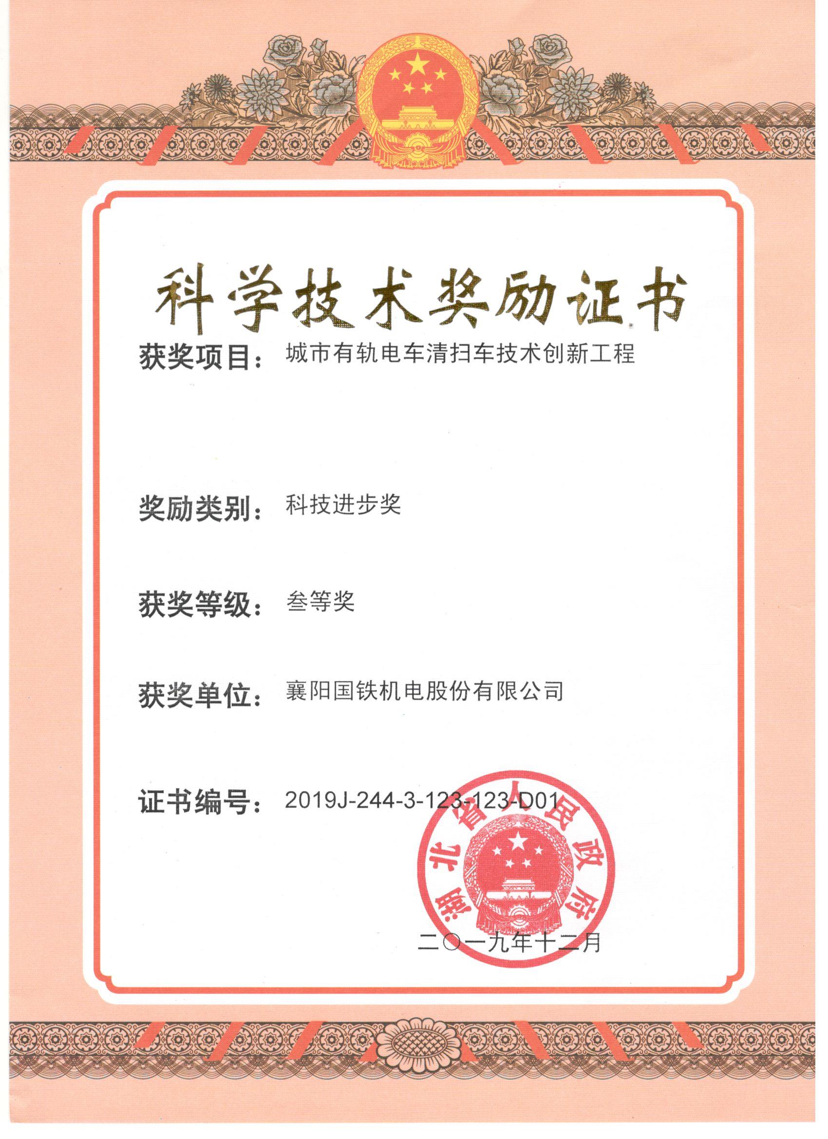 湖北省科技進(jìn)步三等獎(jiǎng) 城市有軌電車清掃車