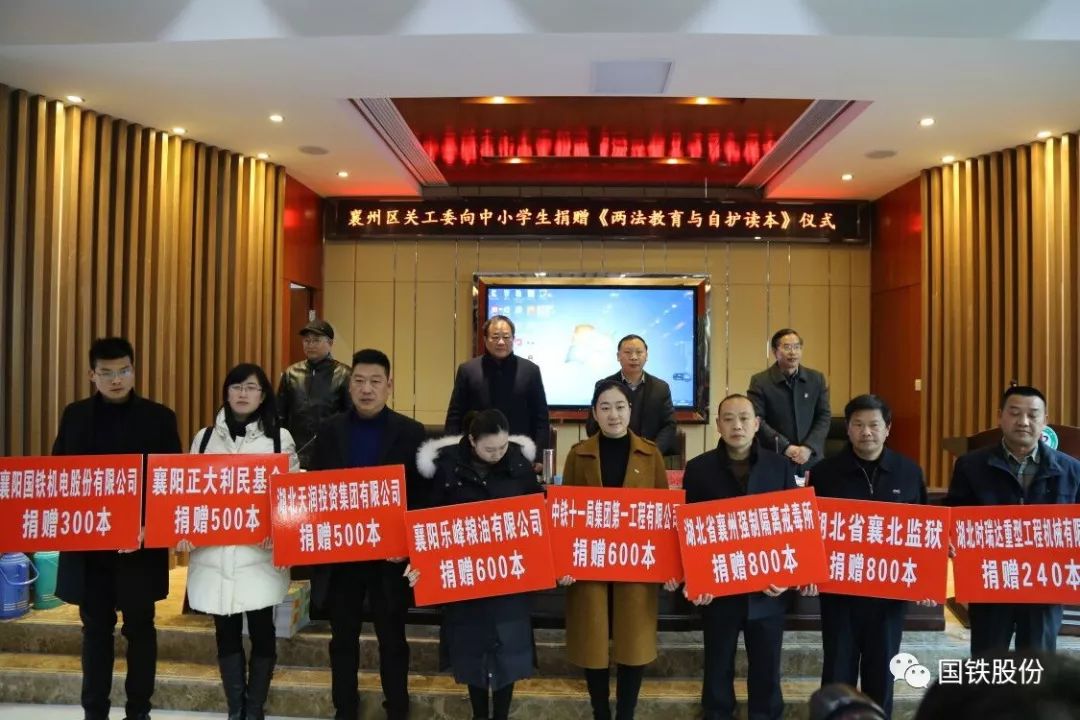 12月19日,襄州區(qū)關(guān)工委向中小學(xué)生捐贈《兩法教育與自護(hù)讀本》儀式在張灣中心學(xué)校舉行。在區(qū)關(guān)工委的倡議下,襄陽國鐵積極響應(yīng),向中小學(xué)生捐贈圖書300本。