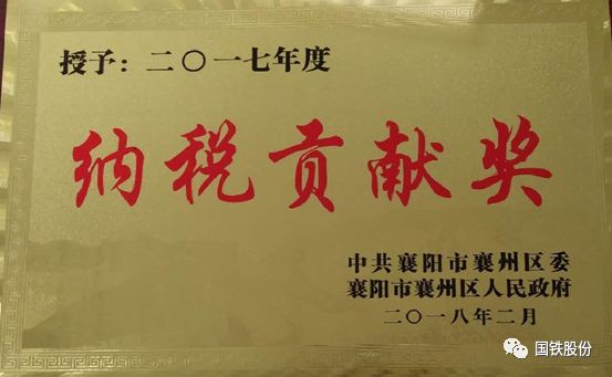襄陽國鐵榮獲2017年度“納稅貢獻(xiàn)獎”